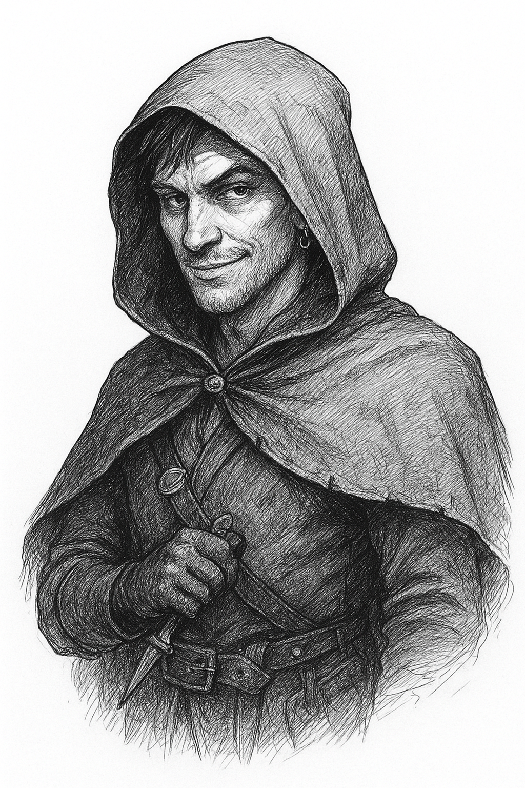 Crow stopped on the bridge. The water below caught his reflection, warped by the ripples — the tilt of his hood, the dark hair escaping it, the grin he gave himself before moving on. “Still handsome enough to fool a few barmaids eh,” he muttered, and the rippling figure mouthed the same words back at him, a half-second later.