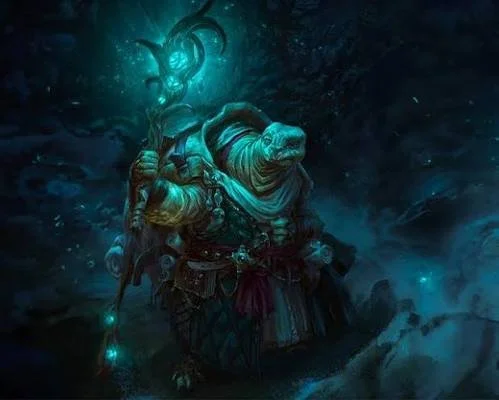 Kal’am’Var and he is searching for the Lost Shell of Yon’Ge Lightbringer. He showed the party a sketch of an elaborately carved Galapa shell and told them that he had tracked it to a mountain chain to the west and believe that was the final resting place of Yon’Ge. He told them sadly he is too old and slow for adventures and would gladly pay them for their services. He had heard about town that these three were adventures of sorts and capable of handling themselves.