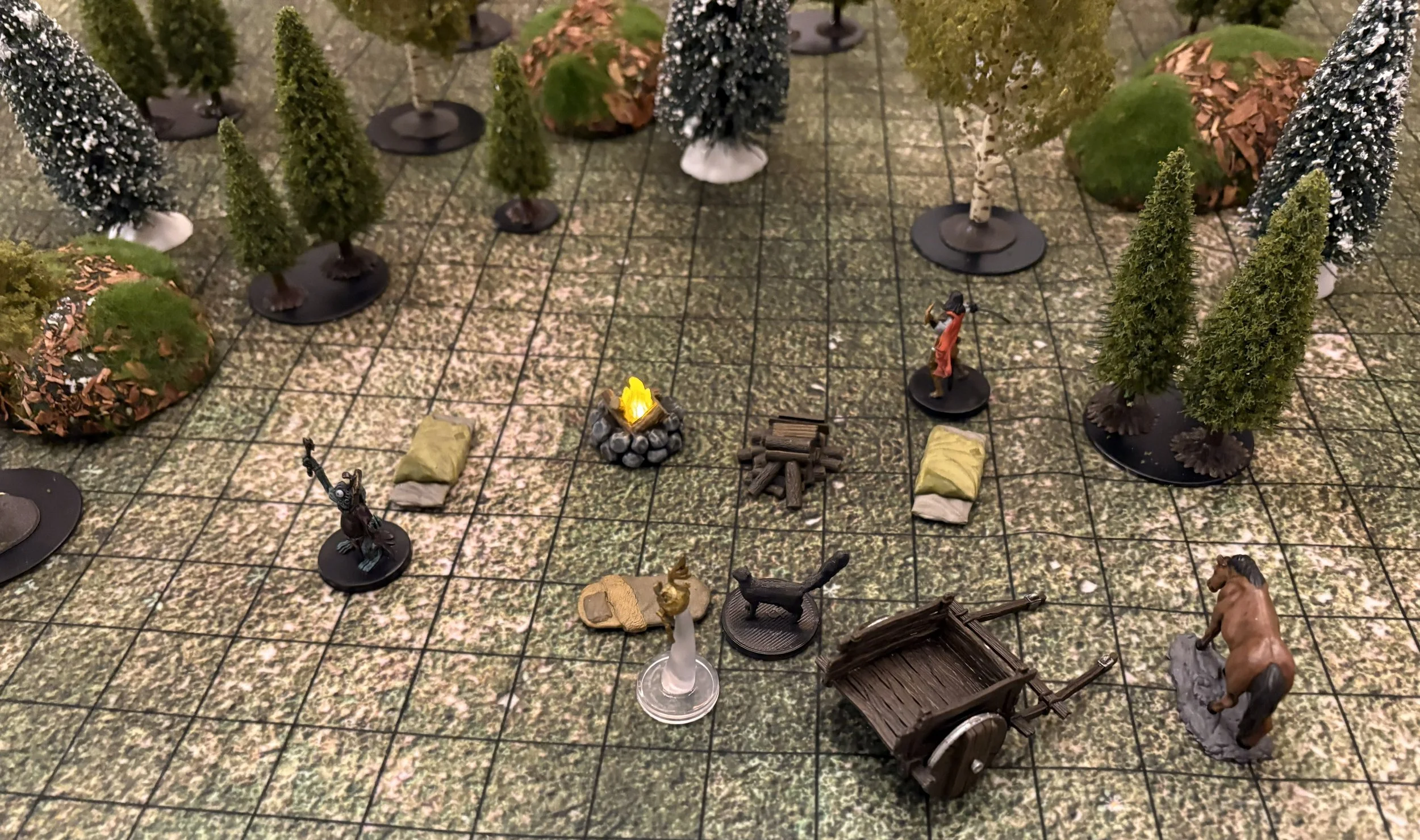 The companions proved to be too much for the goblin war band, and the fight quickly ends with the three friends bandaging their minor wounds and looting the bodies of their fallen enemies. With only a couple of hours left before the rise of the sun the party decides it best to go ahead and break camp and continue on their way.