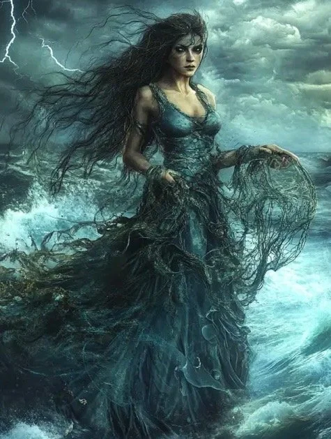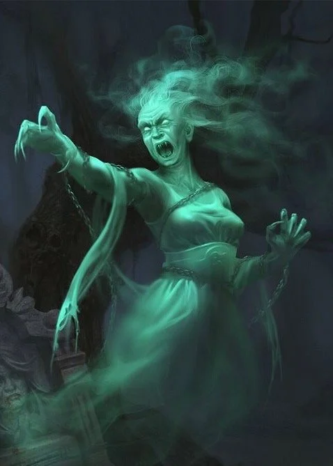 The party decided it was time to seek out this treasure, obviously some sort of curse placed upon it that had taken the family. They made their way to the beach and after some searching they found the tide was in and decided to wait for the tide to go out so they could have hope of locating the cave. As the sun came up and the fog and tide receded they found a cave below the cliff where the home sat like some dark bird. The tunnel was narrow, the stench of brine heavy in the air, with standing pools of sea water causing them to wade forward, the smaller Ribbet and Faerie having to fly or swim at points to trek deeper. After some time they finally found a cave with a dark salt water pool taking up much of the area. At the center stood a large rock, stop it sat a large, water logged chest, its iron banding covered in barnacles and rust. Topaz, bearing the key, decided to approach and open the chest. As she got closer, she took out a gold coin and laid it on the top of the chest, asking Ran for her blessing as she moved to insert the key. As she took out the key, a ghostly image rose up from the water near her, an angry looking spirit who moved to prevent the Infernus from touching the chest. The party squared up for a fight as Topaz stumbled back involuntarily and fell onto her backside in the shallow water.