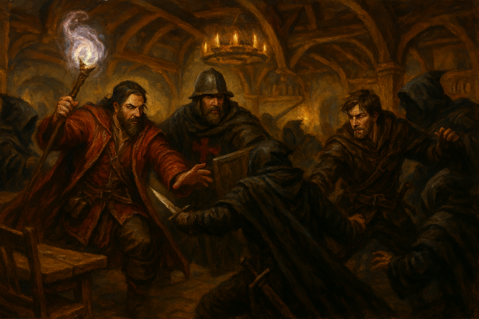 In what seems like a split second, I hear commotion behind me again, i turn back just in time to see a man behind Ukalis with what appears to be a dagger, and Ukalis’ conjured mage’s hand pushing the arm with the dagger away, looks like the man was attempting to take him hostage and Ukalis was able to push away the dagger as he starts to move, Cade repositions and employs his shield and hammer in his hands, ready for a fight. As I acclimate to my current situation at the bar, I see my mark at the bar start to move towards us.